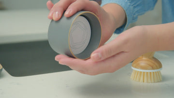 Small but mighty, this sink-side workhorse creates lush suds that make dish time easy (and maybe even a little fun). The ceramic base springs in to action, then stores neatly on your counter to keep the bamboo brush squeaky clean.