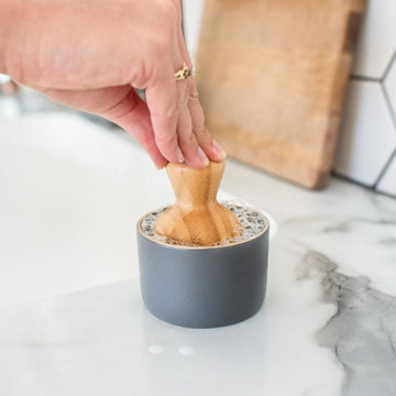 - Bubble Up's ceramic base acts as soap dispenser & spring-loaded to create extra suds