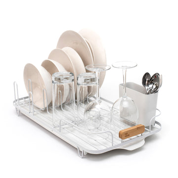 To help your dish rack stand up to decades of dish-drying, it’s best to hand wash the stainless steel tines. The drain board and utensil holder are dishwasher safe, but only on the top rack. Otherwise, we’d recommend hand washing them with a brush, too.