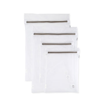 - Recycled Mesh Wash Bags (4) attach to snap closures for easy pre-sorting of small or delicate items. Can be unhooked and tossed directly in washer