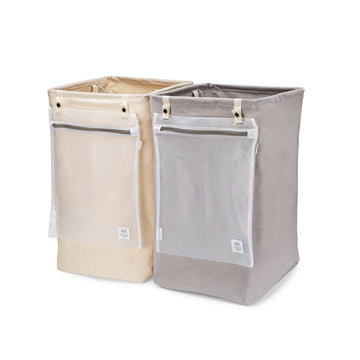 - Set includes: Hampers (2), 4-Piece Recycled Wash Bags (2sm & 2lg) and Anti-Static Dryer Balls