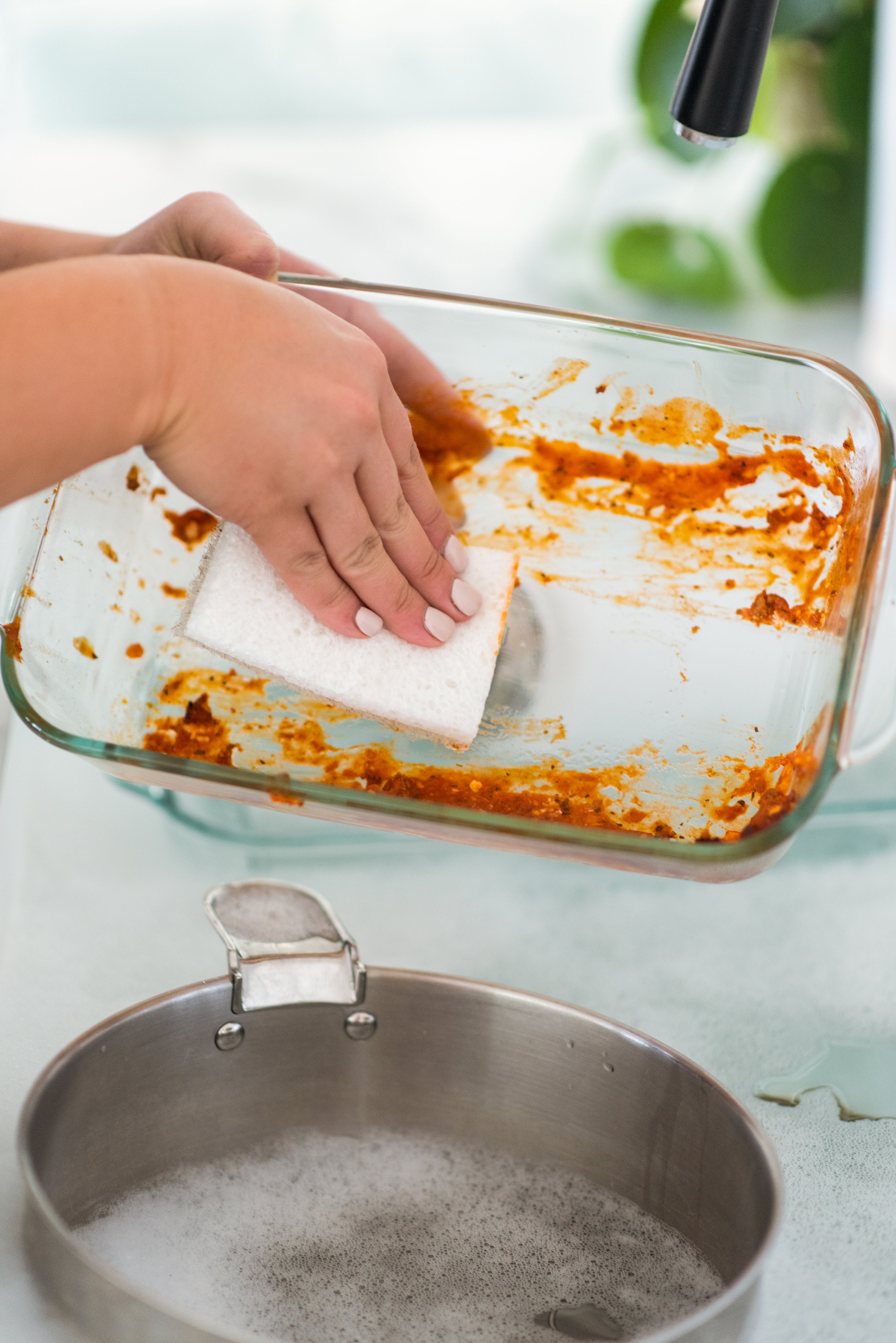 - Abrasive scour pads with gentle sponges for a complete clean