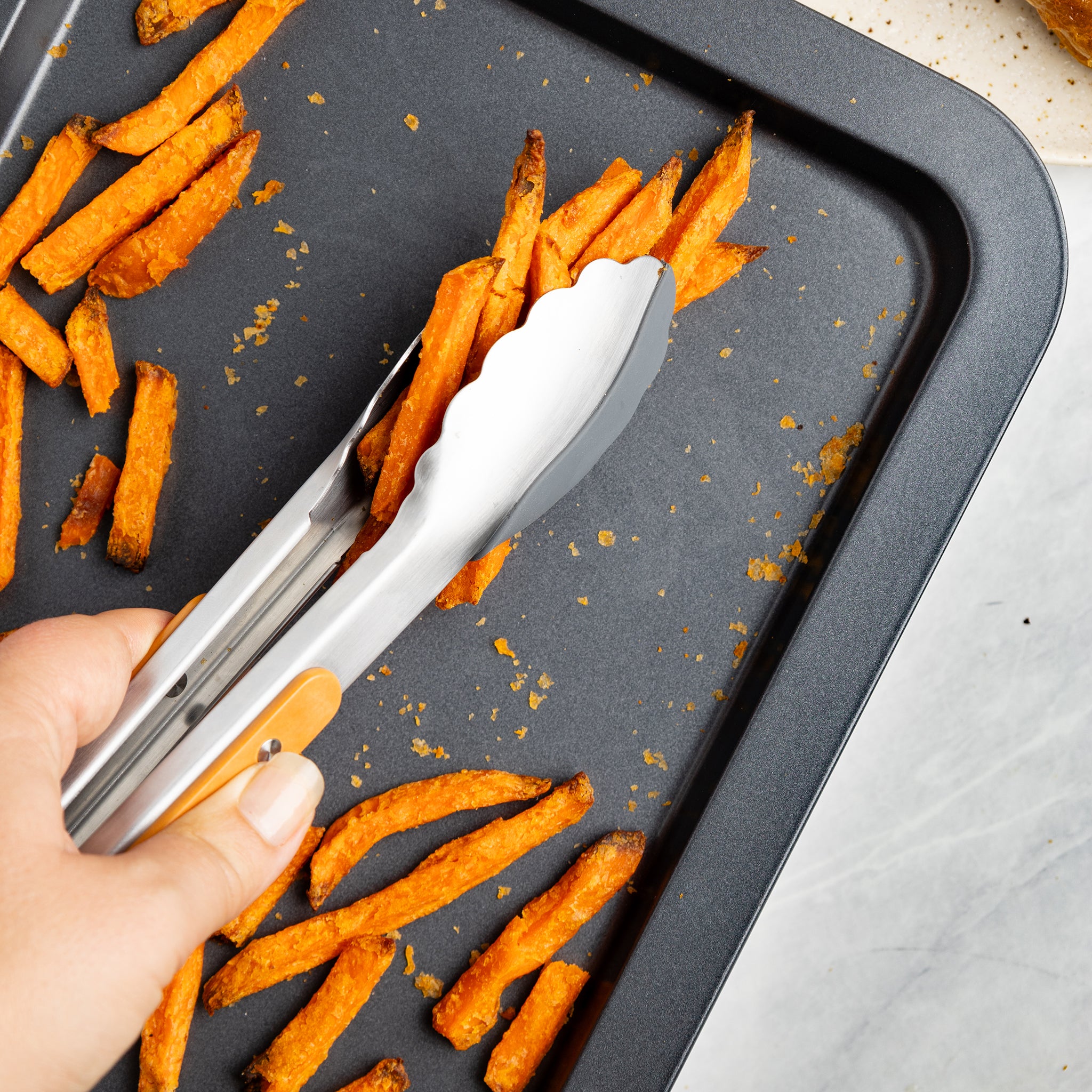 - Non-scratch silicone tong side protects your delicate non-stick or enameled pans